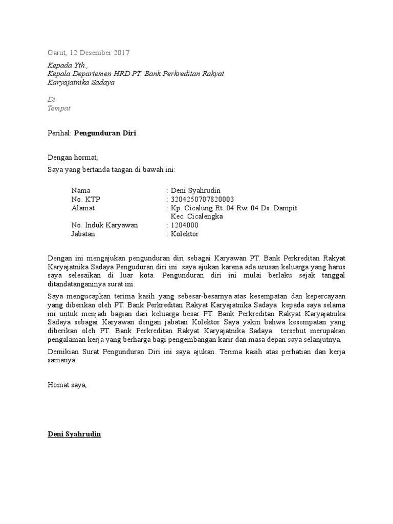 Doc Contoh Format Surat Pengunduran Diri Kerja Kimia Farma Denpasar Academia Edu from 0.academia-photos.com The collection that consisting of chosen picture and the best among others. Berikut ini kumpulan contoh surat pengunduran diri kerja yang baik dan benar. Bisa dikatakan bahwa dengan menggunakan surat tersebut, berarti anda keluar dengan baik dan terhormat. Pada artikel ini penulis memberikan beragam jenis surat pengunduran diri yang dimulai dari contoh surat pengunduran diri dari perusahaan maupun organisasi lalu sekolah dan masih banyak lagi yang kami ulas secara. 5 contoh surat pengunduran diri (resign) file. Contoh surat pengunduran diri organisasi. Format contoh surat pengunduran diri dari perusahaan pdf. Di sini kamu bisa mempelajari berbagai contoh surat pengunduran diri yang baik disertai dengan format susunan serta tips untuk membuatnya.